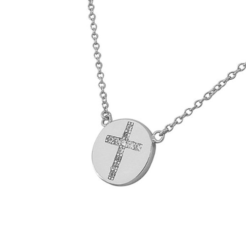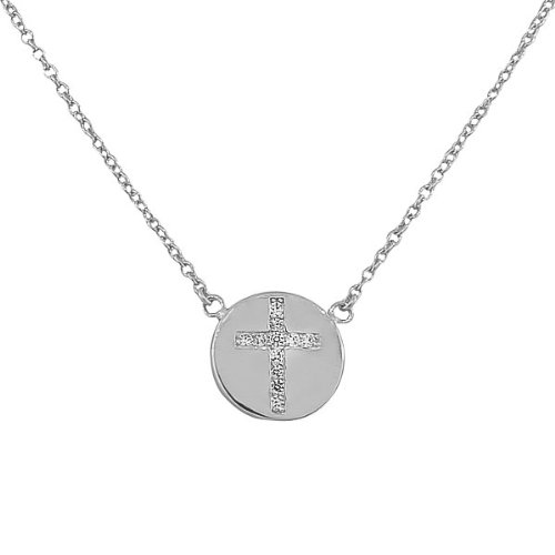 -. Title : 925 Sterling Silver Religious Cross White CZ Classic Pendant Necklace