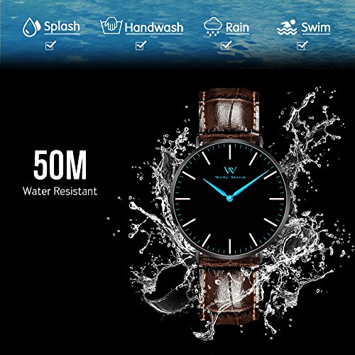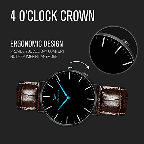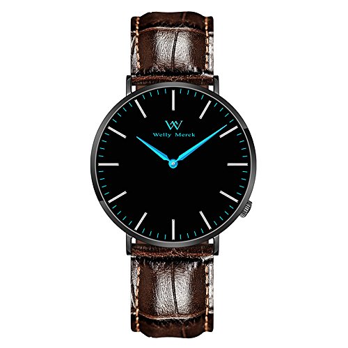 Welly Merck 신사 손목시계 심플 초박형 맨즈 시계 스위스 브랜드 사파이어 유리 스위스 쿼츠 42MM흑 문자판 20MM 교환 가능 레더 스트랩 일상생활 방수