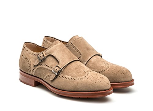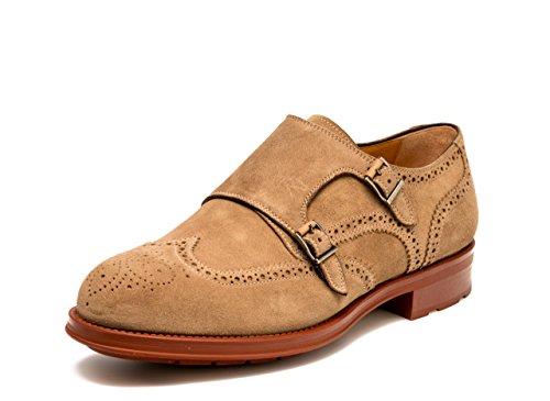 Product DescriptionHand finished suede wingtip double monk strap with brogue details0