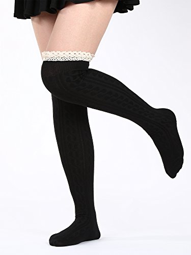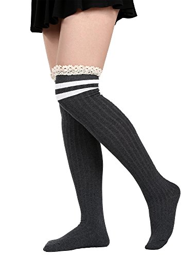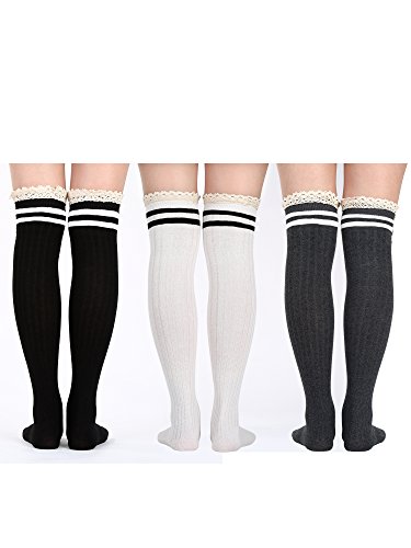 -. Title : Satinior Womens Thigh High Socks Over Knee High Long Stockings Leg Warmers with Lace Trim Knit Knee Girls High Stockings