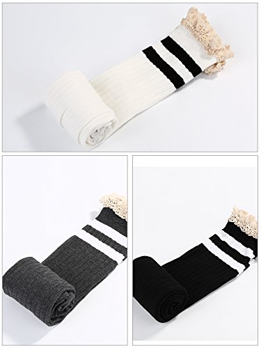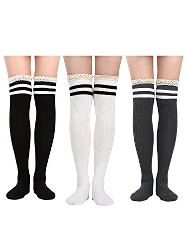 -. Feature : Material: made of 80% cotton and 20% nylon, breathable and soft to wear, can extend over the knee nad won't hurt your skin / Design: the long socks have elasticity, just over the knee for most girls and women, with design of lace trim, they look a little sexy and cute, with stretch and soft fabric, comfortable to wear for a long time / One size fits most: the long stocking measures about 55 cm/ 19.7 inches, have elasticity, fit for women under 80 kg/ 175 pounds, design for most people to wear / Function: suitable for most of daily wearings, can match them with skirts, shorts for a sweet and cozy look, fit for most occasions in your daily life, also can serve as gifts / Color and quantity: there are several sets of color, can satisfy you needs easily, the quantity of different set is not the same, please look at the products description and pictures carefully before purchasing