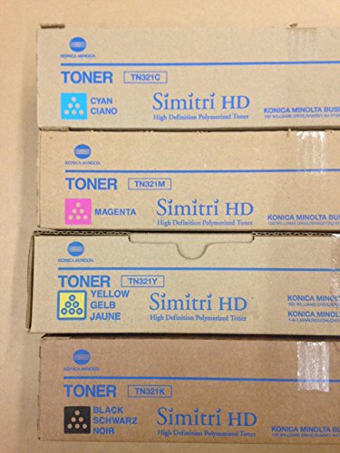 Genuine Konica Minolta toner value pack for use in Bizhub C224, Bizhub C224e, Bizhub C284, Bizhub C284e, Bizhub C364, Bizhub C364e. Black TN321K, cyan TN321C, magenta TN321M and yellow TN321Y.