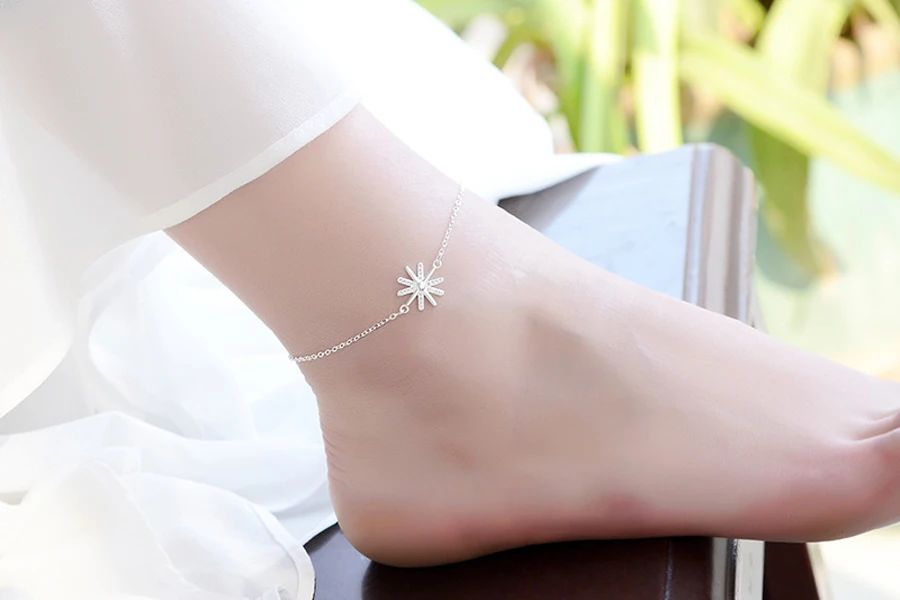 Type:925 Sterling Silver Sun Flower Pendant Anklets Foot Chain
