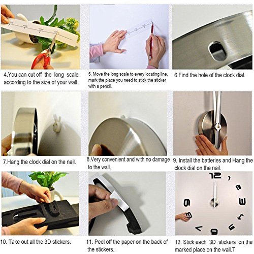 -. Feature : The decals can be applied on all smooth surfaces, such as walls, doors, windows, closets, plastic, metal, tiles etc / Can be used for gifts, crafts, business gifts, holiday gifts, promotion gifts, home decoration / Self-adhesive, water and steam resistant, non toxic and safe for the children / Silent sweeping movement, mute movement, silent clock give you a quiet night / Waterproof high-density foam material, eco friendly