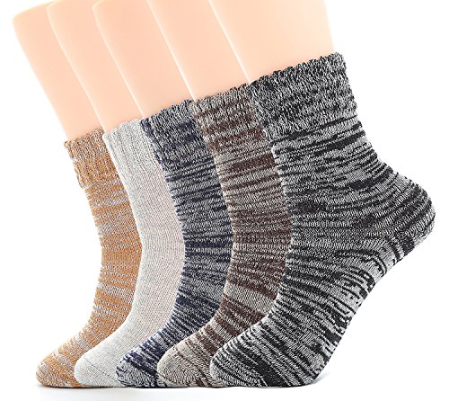 -. Feature : Material: 60% wool for weight and insulation, 40% polyester for strength . The soft material is fit for skin,soft, breathable, wearable, moisture-wicking and odor-fighting. Elastic and enhanced cuffs hold socks comfortably in place, they will not dig into your shins . / Fashion Design : Comfortable, lightweight and versatile enough for any occasion. These warm wool socks feature stylish patterns and vibrant colors that will put a fun finishing touch on your outfits. / Elastic Size: One Size Fits most ,suitable for Standard Men US shoe size 6 to 10. They are elastic and perfectly make it suitable for your feet. / Perfect Wool Socks: Vintage and trendy design thick wool socks, suitable for autumn and winter. Easy to wear with your favorite boots, loafers, clogs or sneakers. Designed for comfort and style . / Package and Warranty : pack of 5 attractive colors crew socks , that will coordinate with whatever you're wearing. We offer a 100% Satisfaction Guarantee. Totally Worry Free: Satisfaction or get your money back .