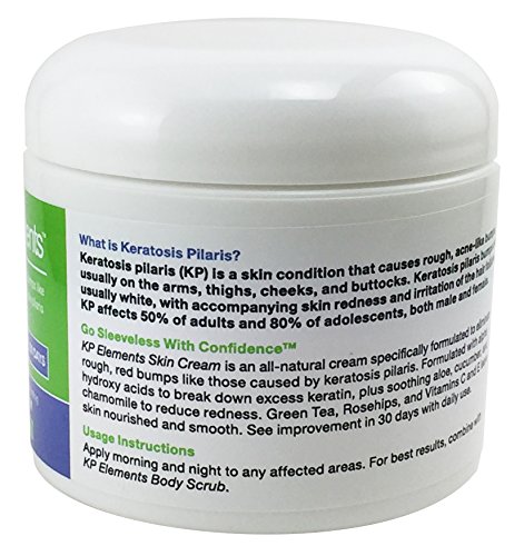 -. Binding : Misc. -. Brand : KP Elements -. Feature : ALL NATURAL KP TREATMENT Cream for Red Bumps on the Arms and Thighs also known as Keratosis Pilaris, or Chicken Skin / ENRICHED WITH 8 ESSENTIAL OILS and Vitamins C and E - No harsh or irritating chemicals - Smooths your skin, naturally! / DERMATOLOGIST TESTED AND APPROVED - Have confidence in the product you are buying! / CONTAINS GREEN TEA, Chamomile Extract, and Aloe Leaf Juice to Soothe Skin - Manage Your Keratosis Pilaris Today with KP Elements! / Most Effective when combined with our KP Body Scrub - 100% Satisfaction Guaranteed! -. IsAdultProduct : 0 -. Label : Elements Brands -. Manufacturer : Elements Brands -. ProductGroup : Beauty -. ProductTypeName : BEAUTY -. Publisher : Elements Brands -. Studio : Elements Brands -. Title : KP Elements Keratosis Pilaris Treatment Cream - Keratosis Pilaris Cream for Arms and Thighs - Clear up Red Bumps Today by Combining Our KP Cream and Body Scrub