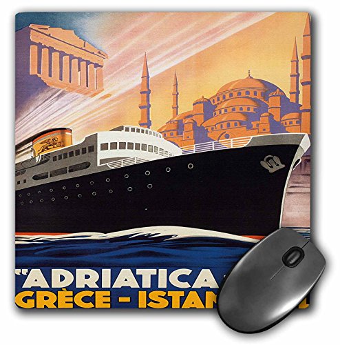 3D Rose "Adriatica Venise Greeze Istamboul Travel Poster With Ocean Liner" Matte Finish Mouse Pad - 8 x 8" - mp_170513_1