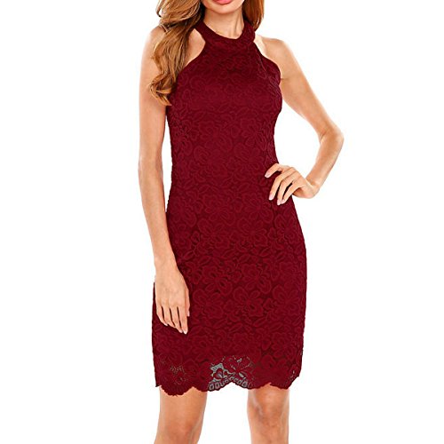 -. Feature : Soft and stretchy material, Concealed zipper at back, Full lining / Full floral lace overlay, High neck, Sleeveless, Cutout back / Halter top and figure-skimming skirt with scalloped hem, bodycon dress shows your body curve / Slim fitting, Above knees. Off shoulder lace dress, Sheath dress, Cocktail dress, Summer dress / Sexy backless lace dress suits for Cocktail, Wedding, Prom, Homecoming, Evening, Party, Formal event, Casual and so on. Hand wash cold, dry flat, please don't ironing