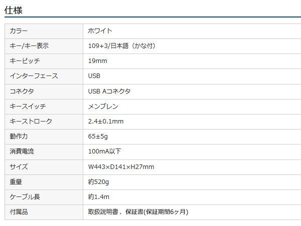 fk094igrjs余分なスペースを排除したコンパクトデザインしっかりとした深い押し心地のメンブレン方式ですインターネット・メールソフト・消音が一発で使える便利な機能付き サイズ 個装サイズ:4×46×17cm 重量 個装重量:680g 生産国 中国 標準日本語配列のスタンダードUSBキーボード 余分なスペースを排除したコンパクトデザインしっかりとした深い押し心地のメンブレン方式ですインターネット・メールソフト・消音が一発で使える便利な機能付き