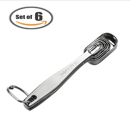 Measuring Spoons, Food Safe 18/8 Stainless Steel Measuring Spoons for Dry and Liquid Ingredients, Narrow Shape, Fit in Spice Jars, Set of 6, Cannous Measuring Spoon set for Baking & Cooking