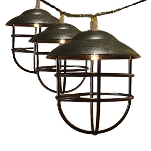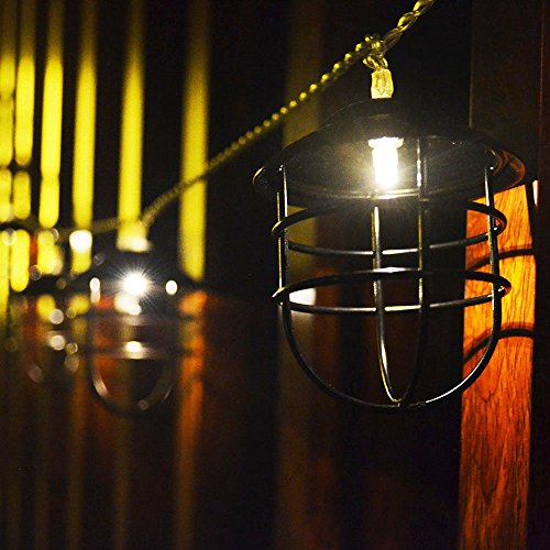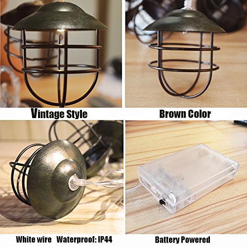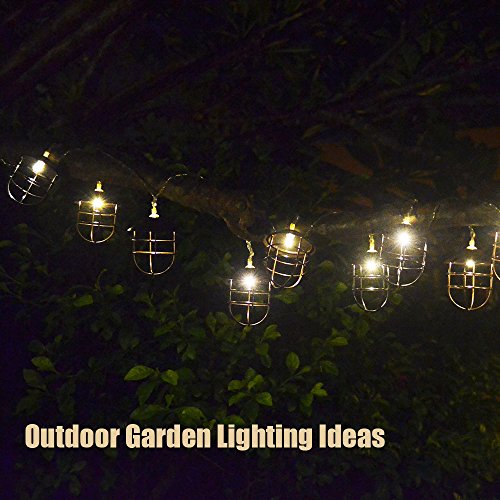 ACRAFT Handmade Lantern String Lights for Patio Rustic Metal Cage Pendant Lighting for Tree Branches Outdoor Garden 10 Bulbs 7.1ft (Bronze Brown)