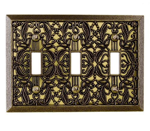 Amerelle Wallplates do more than just cover electrical boxes. They are an easy and inexpensive way to add a decorative accent to any room in your home. Decoratively adorn your room's light switch by mounting the Amerelle Filigree 1-Gang Antique Brass Rocker Switch Wall Plate. The steel construction of this wall plate provides durability.Feature