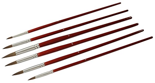 The pointed-head round artist brushes come in sizes: #2, #4, #6, #8, 10, #12, providing a good range of brush strokes and techniques.
