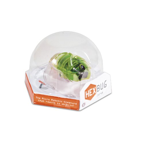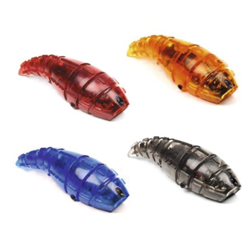 The Hexbug Larva is a micro robotic creature that slithers forward on smooth surfaces using a slow, rhythmic flexing motion. Just like real larvae, each of these creepy crawlers reacts to its environment, instinctively changing direction upon sensing an object in its path and wriggling off to explore a clear, undisturbed path ahead. Its behavior is eerily mesmerizing to watch and interact with. The Hexbug Larva is CPSIA approved for kids ages 8 and up.The Hexbug Larva features a forward facing infrared sensor that allows it to detect fellow squirming larvae and other objects in its path. When the Hexbug Larva encounters a road block, it spins around on two micro robotic wheels hidden beneath its hard exterior shell and heads off in a new direction. Three button cell batteries are included. Color may vary.Feature