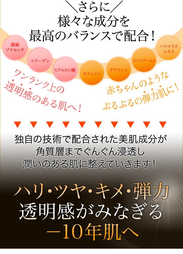 水、DPG、メトキシケイヒ酸エチルヘキシル、ステアリン酸、酸化チタン、DME、LPG、タルク、TEA、シリカ、ナイロン-12、含水シリカ、水酸化Al、アルギン酸Na、エタノール、プラセンタエキス、グラウシン、カプリリルグリコール、ヤシ油アルキルグルコシド、グリセリン、コエンチームA、カフェイン、ミシマサイコ根エキス、PEG-8、ジ酢酸ジペプチドジアミノブチロイルベンジルアミド、加水分 解コラーゲン、ハマメリス葉エキス、ヒアルロン酸Na、ミリスチン酸、セタノール、メチルパラベン、エチルパラベン、プロピルパラベン、BHT、グリチルリチン酸2K、フェノキシエタノール、BG、DEA、酸化鉄、香料 |