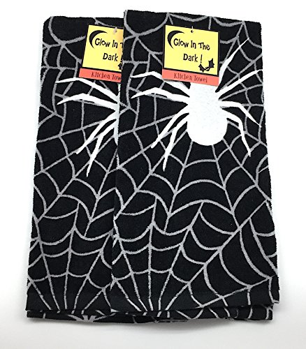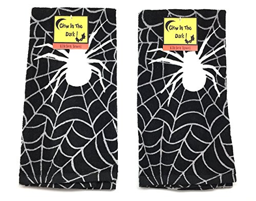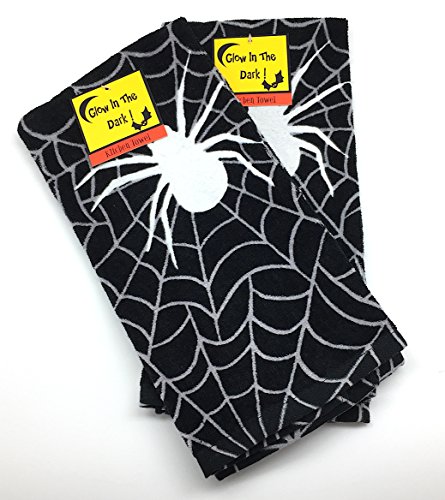 Halloween Glow in the Dark Spider Web Kitchen Hand Towels: Soft and Absorbent Velour Cotton, 2 Pc. Set