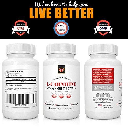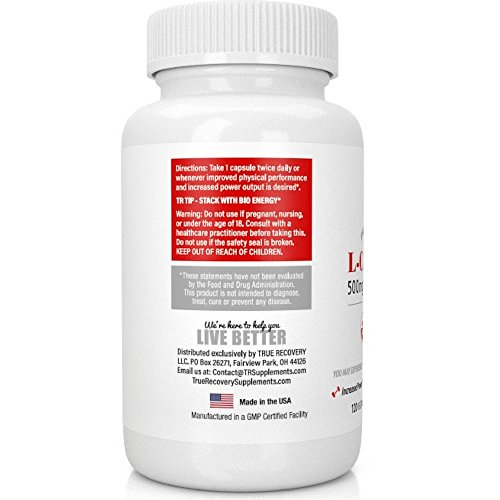 -. Feature : ★ IMPROVE PHYSICAL PERFORMANCE with True Recovery's L-Carnitine. In a pilot study done on rugby players, L-Carnitine paired with Caffeine proved to increase physical endurance better than either ingredient by itself. Consider pairing True Recovery's L-Carnitine with True Recovery's Bio Energy(A potent combination of Caffeine+L-Theanine). / ★ RECOVER FASTER: L-Carnitine has been shown to help your muscles recover faster. That means less soreness, AND less chance of injury. / ★ LESS FATIGUE so you can do more. Due to its ability to produce energy, L-Carnitine decreases fatigue so you can get more done. / ★ UNDER THE HOOD: Not all L-Carnitine is created equal! We have the best form and most potent L-Carnitine on Amazon. Due to its ability to help turn the food you eat into energy, this well-known and well-researched amino acid can provide a great boost to your workout or hectic day. / ★ 100% LIVE BETTER PROMISE - If you don't love it, return it and get your money back instantly. What are you waiting for ... TRY IT NOW!