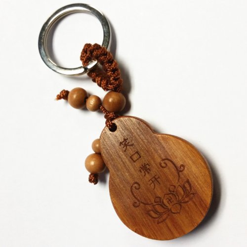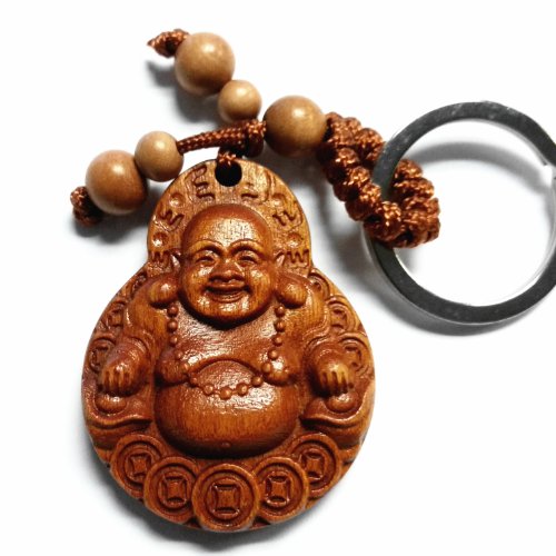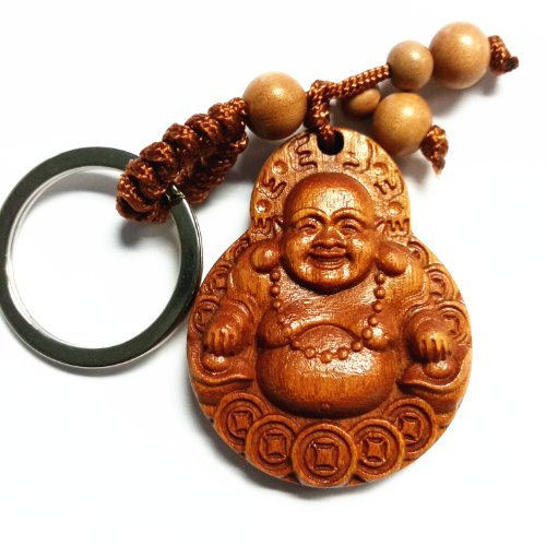 Feng Shui Peach Wood Money Buddha (Laughing Buddha) Key Ring for Wealth Luck with Betterdecorpounch