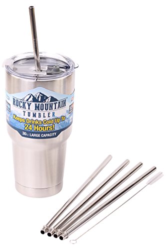 4 pack of "Bend" style Premium Stainless Steel Drinking straws that fit in the lid of the "As Seen on TV" Rocky Mountain 30-Ounce Double-Wall Rambler Vacuum Cups + 1 Stainless Steel Cleaning Brush