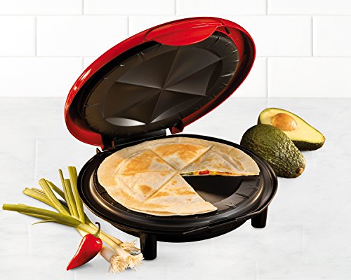 Bring the fiesta right into the kitchen and create crispy and delicious quesadillas quickly. The extra stuffing latch allows for more filling and the plate design creates 6 wedges that seal in the flavor. With the non-stick surface and drip tray cleanup is simple. Cooks quesadilla in just minutes.
