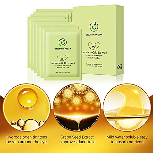 Bornkey eye mask nourishes and moisturizes the skin with grape seed extract and luxury 24K gold ingredient. Deep moisture eye mask contains abundant nutrition with grape seed extract and luxury 24K gold ingredient, plant collagen and extract for a clean and glowing completxion 1. Reducing eye puffiness.