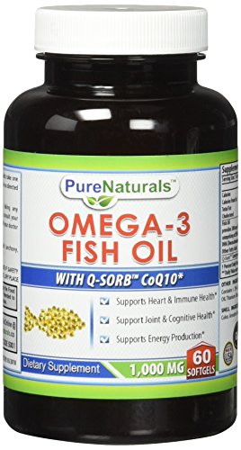 -. Binding : Health and Beauty -. Brand : Pure Naturals -. EAN : 0819070015001 -. Feature : Two of the most recognized and beneficial heart-supporting nutrients available together in one easy-to-swallow soft gel / Coenzyme q10 (coq10) is a critical cellular energizer and a key antioxidant. / Coq10 is absorbed more efficiently in the presence of oils and fats such as fish oil / Each gluten-free Bronson omega-3 fish oil plus coq10 soft gel delivers 1000 mg. Of fish oil / Omega-3 fatty acids are classified as "essential"; they must be obtained through supplements or the diet. -. IsAdultProduct : 0 -. Label : Health Concepts LLC -. Manufacturer : Health Concepts LLC -. NumberOfItems : 1 -. PackageQuantity : 1 -. ProductGroup : Health and Beauty -. ProductTypeName : HEALTH_PERSONAL_CARE -. PublicationDate : 2016-11-14 -. Publisher : Health Concepts LLC -. ReleaseDate : 2016-11-14 -. Studio : Health Concepts LLC -. Title : Pure Naturals 1000 mg Omega-3 Fish Oil with COQ10 30 mg Softgels, 60 Count -. UPC : 819070015001