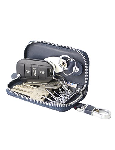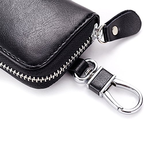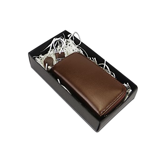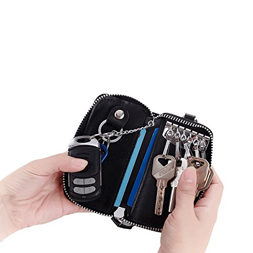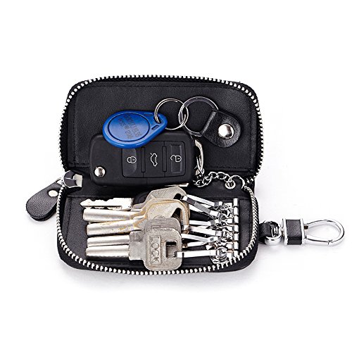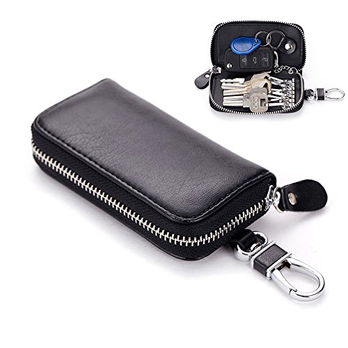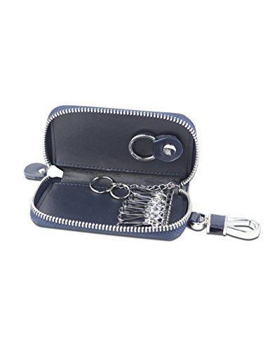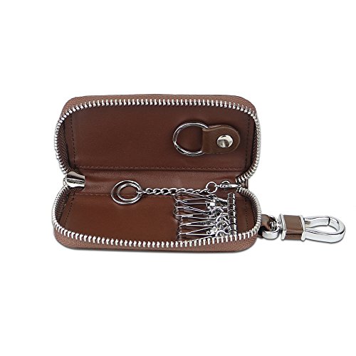 JULY Genuine Leather Zipper Key Case with 7 key Chains 2 Pocket Money Sleeves and 1 Smart Car Key