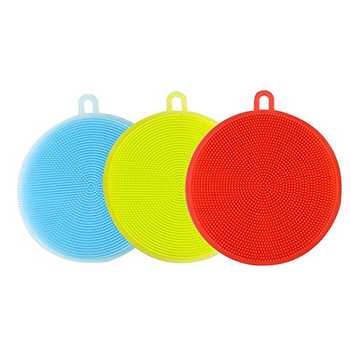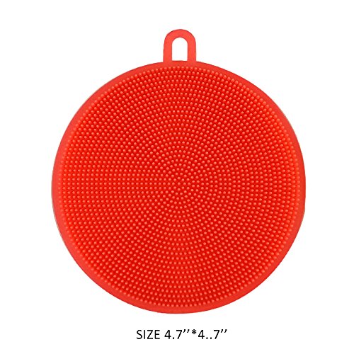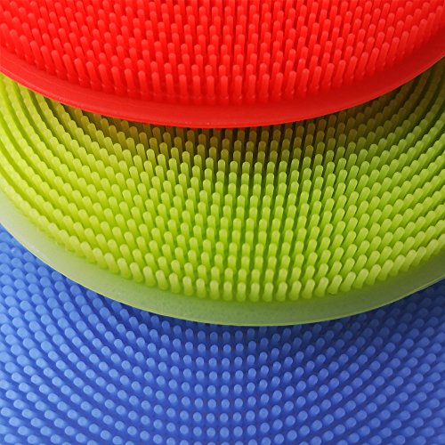 Food-grade Round Antibacterial Silicone Non Stick Dishwashing Dish Brush Sponge Towel Scrubber For Kitchen Wash Pot Pan Dish Bowl / Wash Fruit and Vegetable (Red+Yellow+Blue)