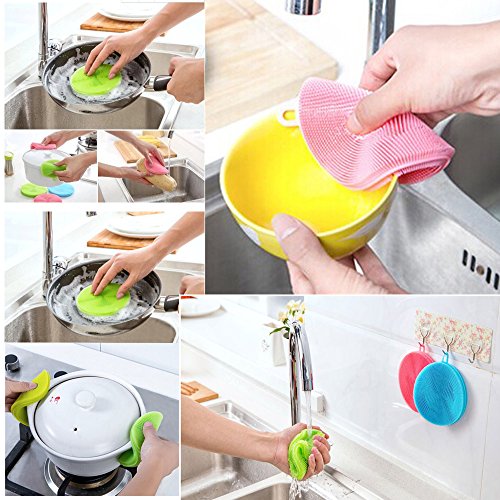 - EASY TO CLEAN & KEEP DRY - They can be easily sanitized - unlike regular sponges that are bacteria magnets.The silicone dish scrubbers can rinse clean fairly well and dry thoroughly.They will be good as new when they get clean and dry, and they can easily be popped in the dishwasher or even boiled to get clean.