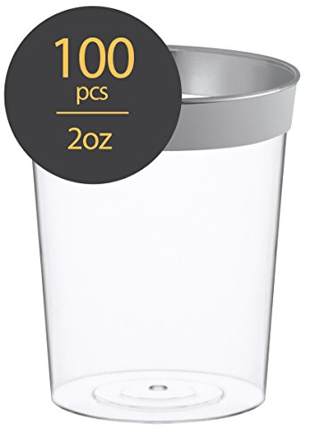 Elite Selection 100 Count 2 Oz. Party Disposable Hard Plastic Clear Shot Cups With Silver Rim
