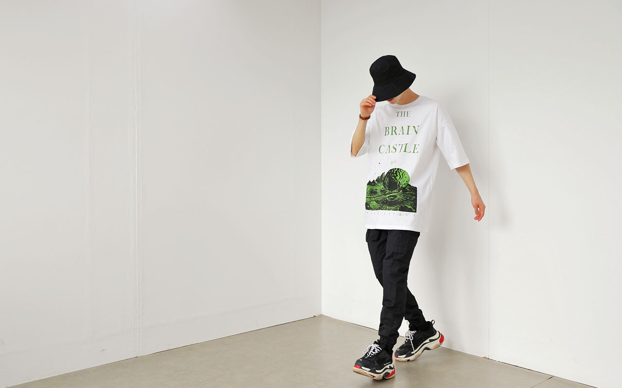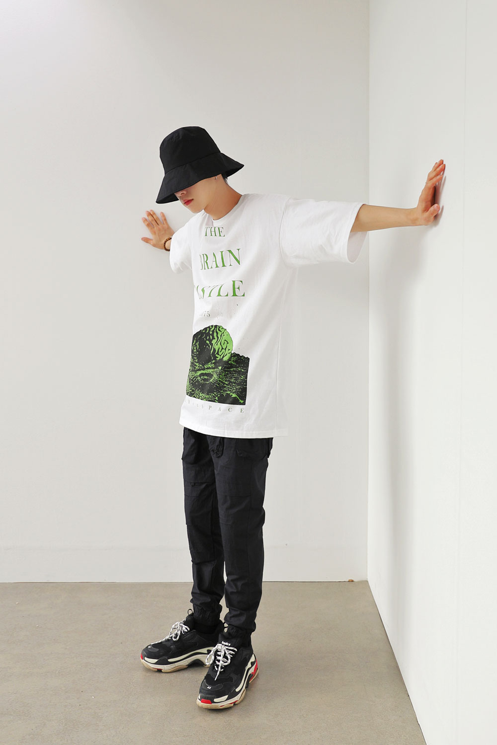 명다크한 분위기가 매력적인 오버핏의 반팔티셔츠입니다.FABRIC INFO