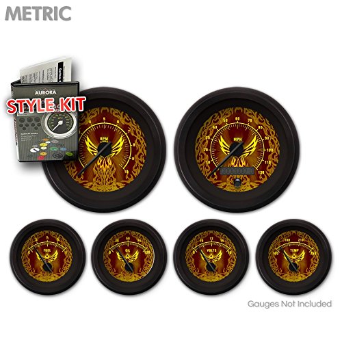Studio : Aurora Instruments Publisher : Aurora Instruments Binding : Automotive Product Description Style Kit - Metric Phoenix Series, Black Modern Needles, Black Trim Rings Aurora Style Kits lets you transform the look of your Aurora Gauges with ease. Each gauge style kit includes gauge faces, needles, and trim rings for oil pressure, fuel level, tachometer, speedometer, volt, clock, oil temperature, and turbo boost. Simple, detailed instructions make changing out your Aurora gauge faces, needles, and trim rings a snap - even when the gauges are installed. Choose from thousands of gauge face styles or create you own online. Available in Imperial (SAE) and Metric. Aurora gauges offers the worlds largest selection of gauges and instrumentation for your ride, and are the world's only gauges offering interchangeable gauge faces, trim rings, and needles. Choose from thousands of designs and options, or custom create your own . 0