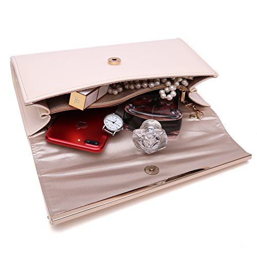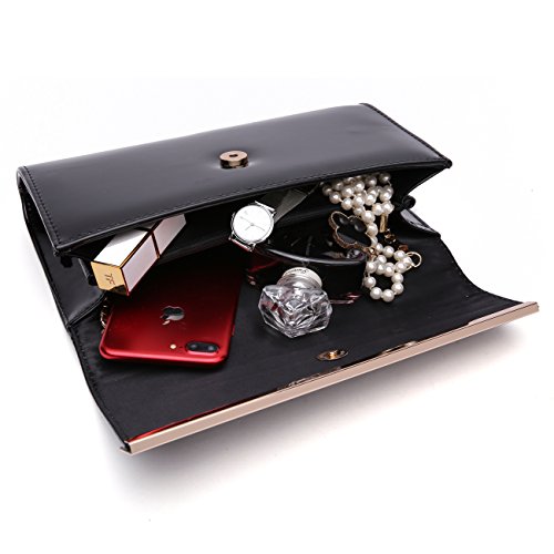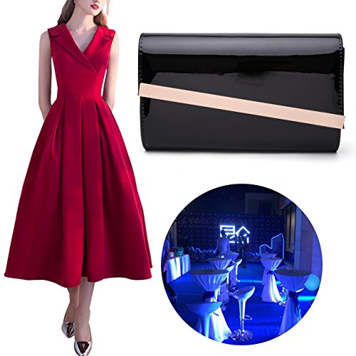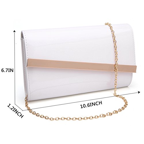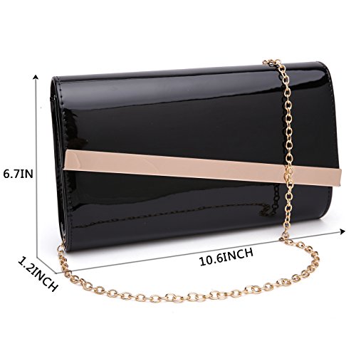 -. Feature : Versatile Carry option:Flexible to Carry,You can hold this evening clutch in your hand or you can also use it as a shoulder bag with the chains coming with the bag. / Easy To Clean:The clutch bag external main material is made of Patent leather, which is easy to clean,and ordinary water resistant. / Stylish Design:This evening handbag made from Magnetic-flap closure with removale chian strap which brings more convenience,when you take it in some special occasion, and patent leather clutch is sure to impress. / CAPACITY:Fashionable evening clutch with one polyester lining interior small pocket,Big pocket inside enough space for your valuable thing,such as smartphone, keys, wallet,make up and toiletries. / OCCASIONS:As evevning bag perfect for parties,weddings,date nights,or family reunion,prom,banquet and cocktail party when you take part in special occasion. as a daily clutch,when you're out of the street and have a vocation