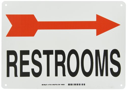 Brady 47540 Plastic, 10" X 14" Sign, Legend, "Restrooms (W/Right Arrow)"