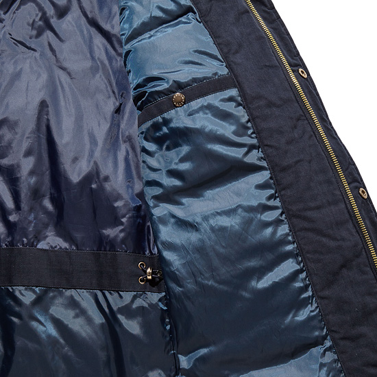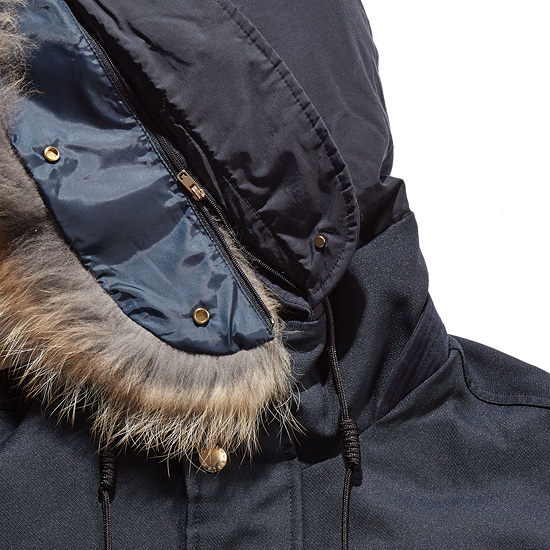 - 골드 폭스 퍼 트리밍 후드와 부자재도 골드 컬러를 사용하여 고급스러운