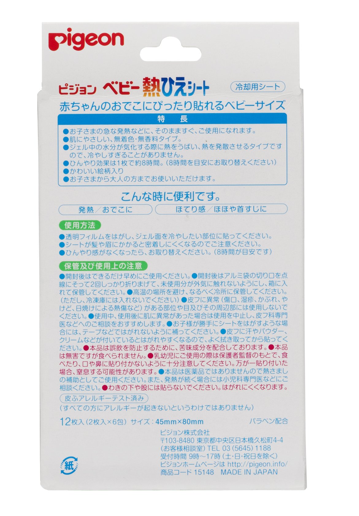 Pigeon baby Netsuhie sheet 8 hours cooling 12 pieces (2 pieces A- 6 packages)