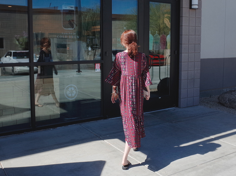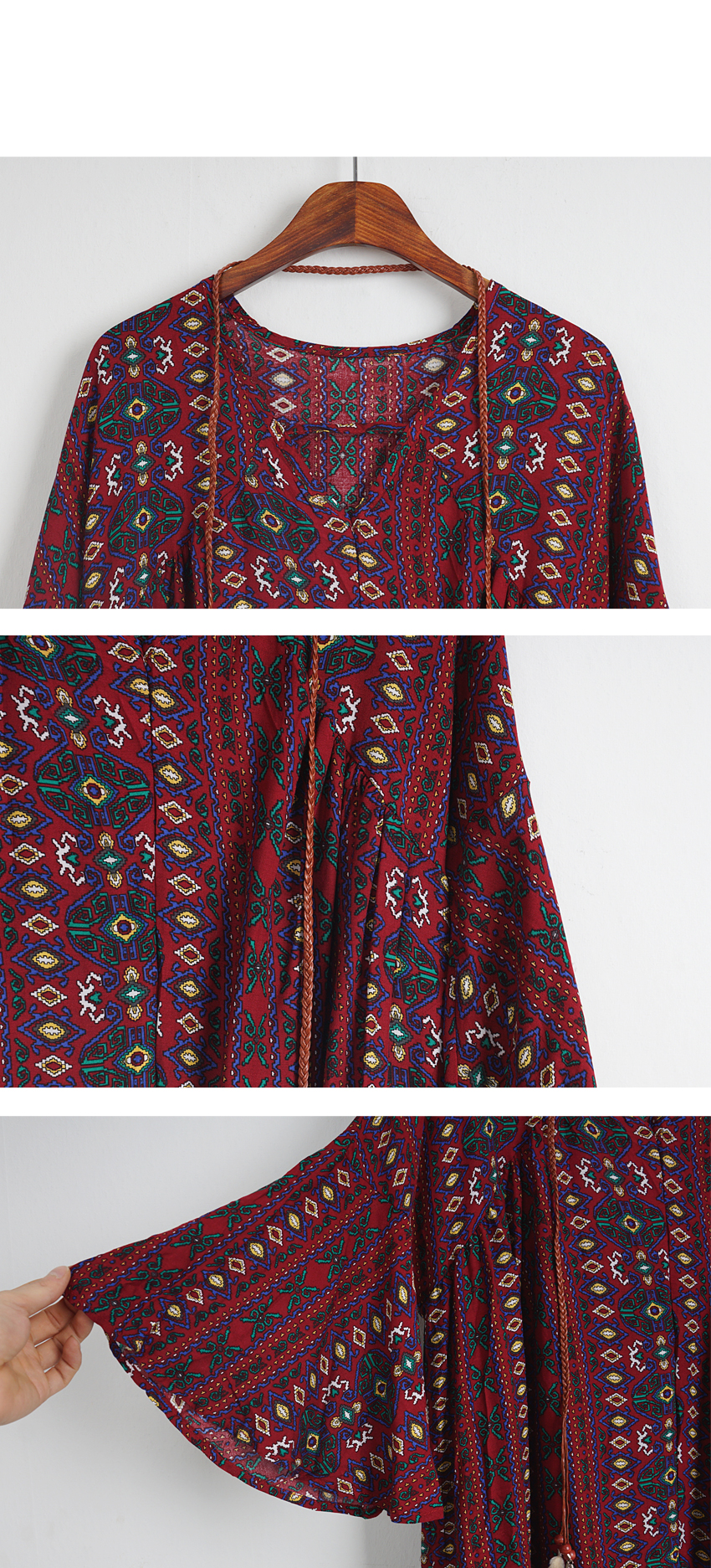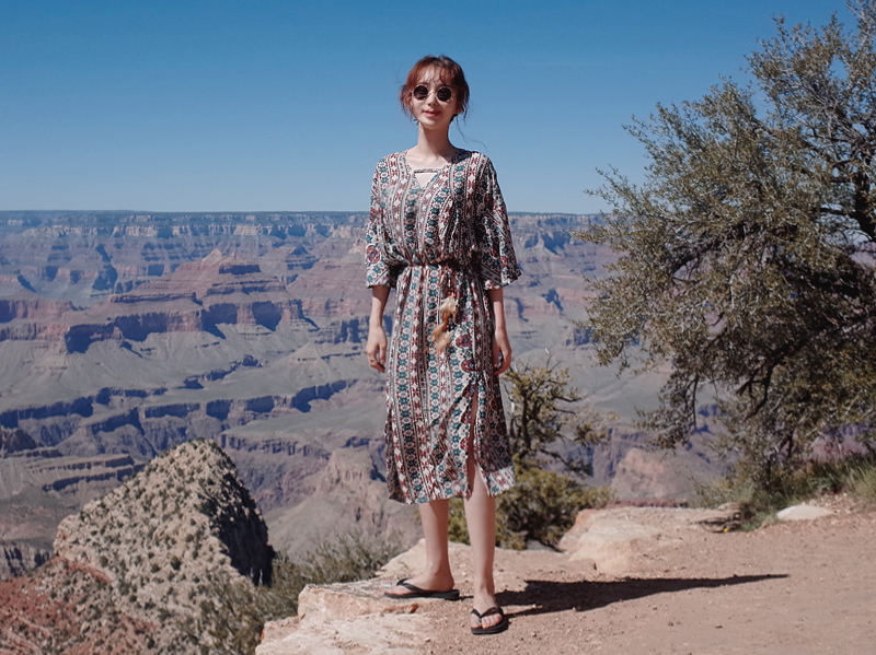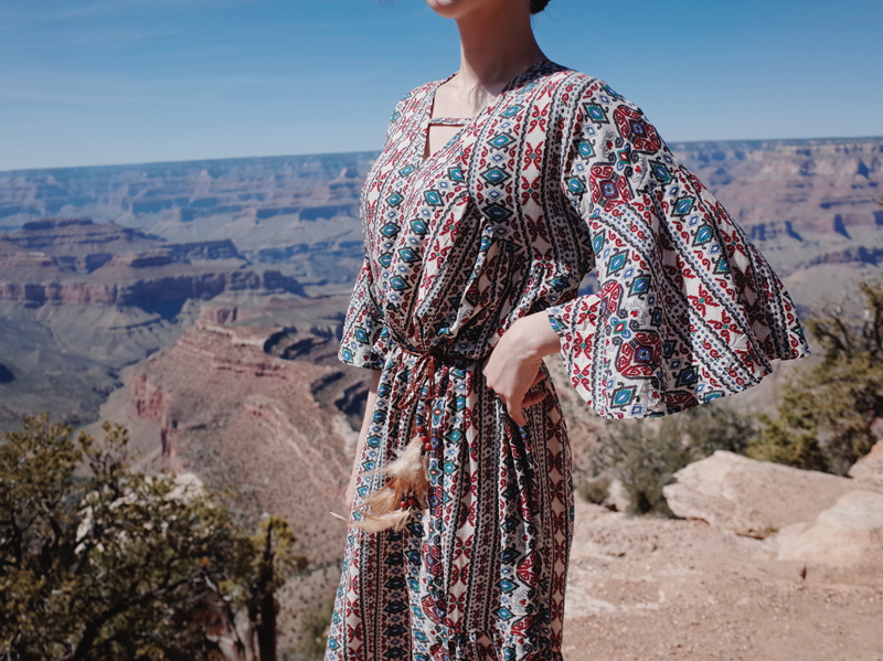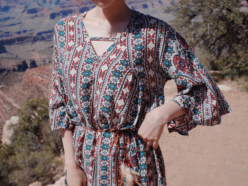 Ethnic long dress woman chiffon bohemian vacation beach summer flower