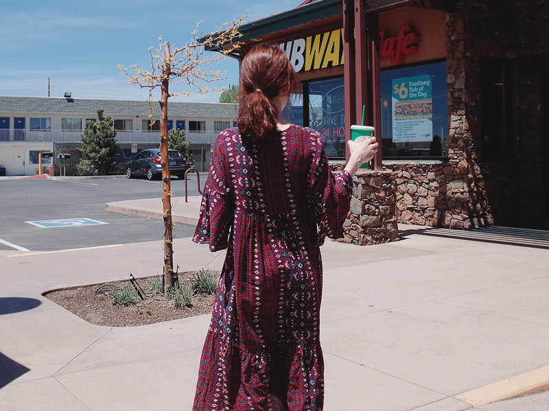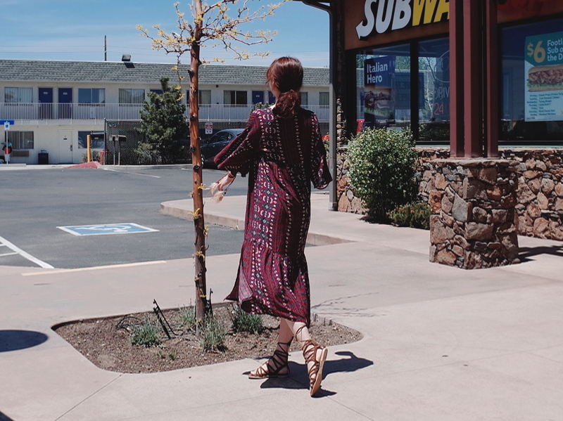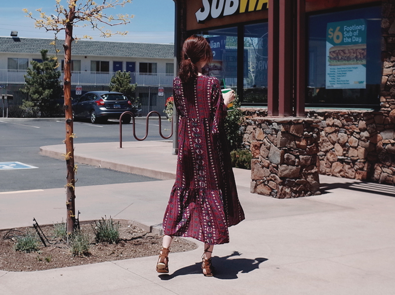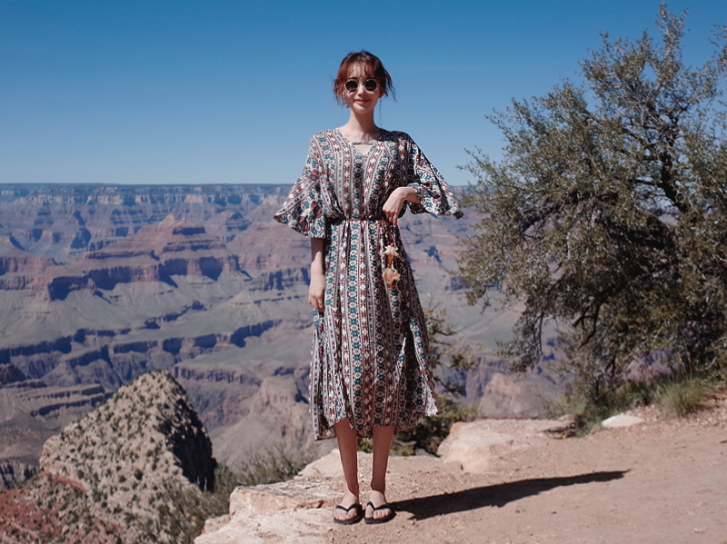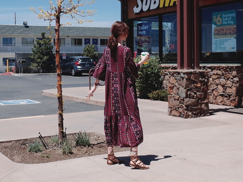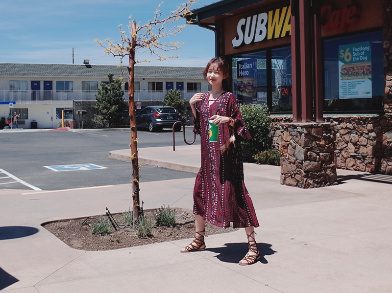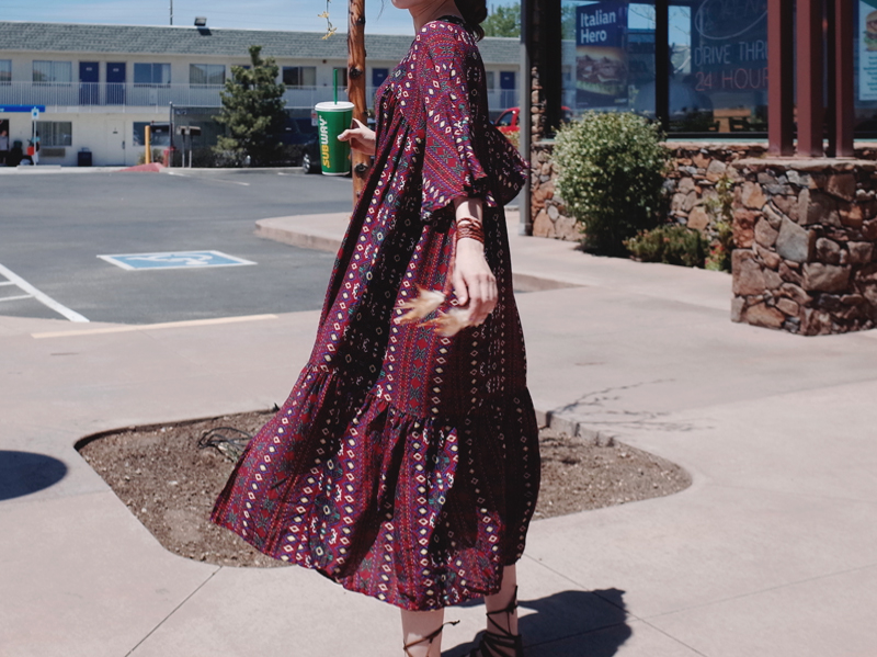 Ethnic long dress woman chiffon bohemian vacation beach summer flower