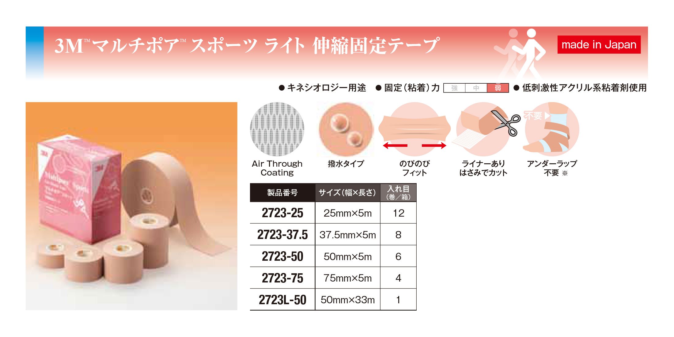 3M (3M) Kinesiology taping multi pore sport light 25mm 12 Volume 272325