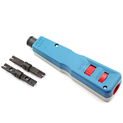 - PUNCH DOWN IMPACT TOOL FOR NETWORK WIRE - Professional-Grade Impact punch down Installation tool with 110 & BK Blades,spare blade storage, interchangeable & reversible blades,the punch down to inserts and cuts terminations in one simple operation for Cat6e/Cat6/Cat5e/Cat5/Network Cable.