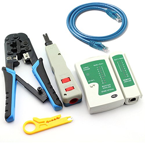 Maxmoral Ethernet Network Tool Kit - Network Wire Impact Punch Down Tool, Cable Connectors Crimper Tool, Network Cable Tester Detector,Cat6 RJ45 Ethernet Patch Cables,Network Wire Stripper