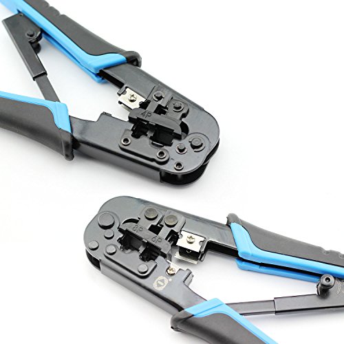 - PROFESSIONAL CABLE CONNECTORS CRIMPER TOOL - Heavy-Duty Rugged Carbon Hardened Steel Construction Crimp 8P, 6P, and 4P connectors modular plugs and has a stripper for Round AND Flat cat5e and cat6e cables.