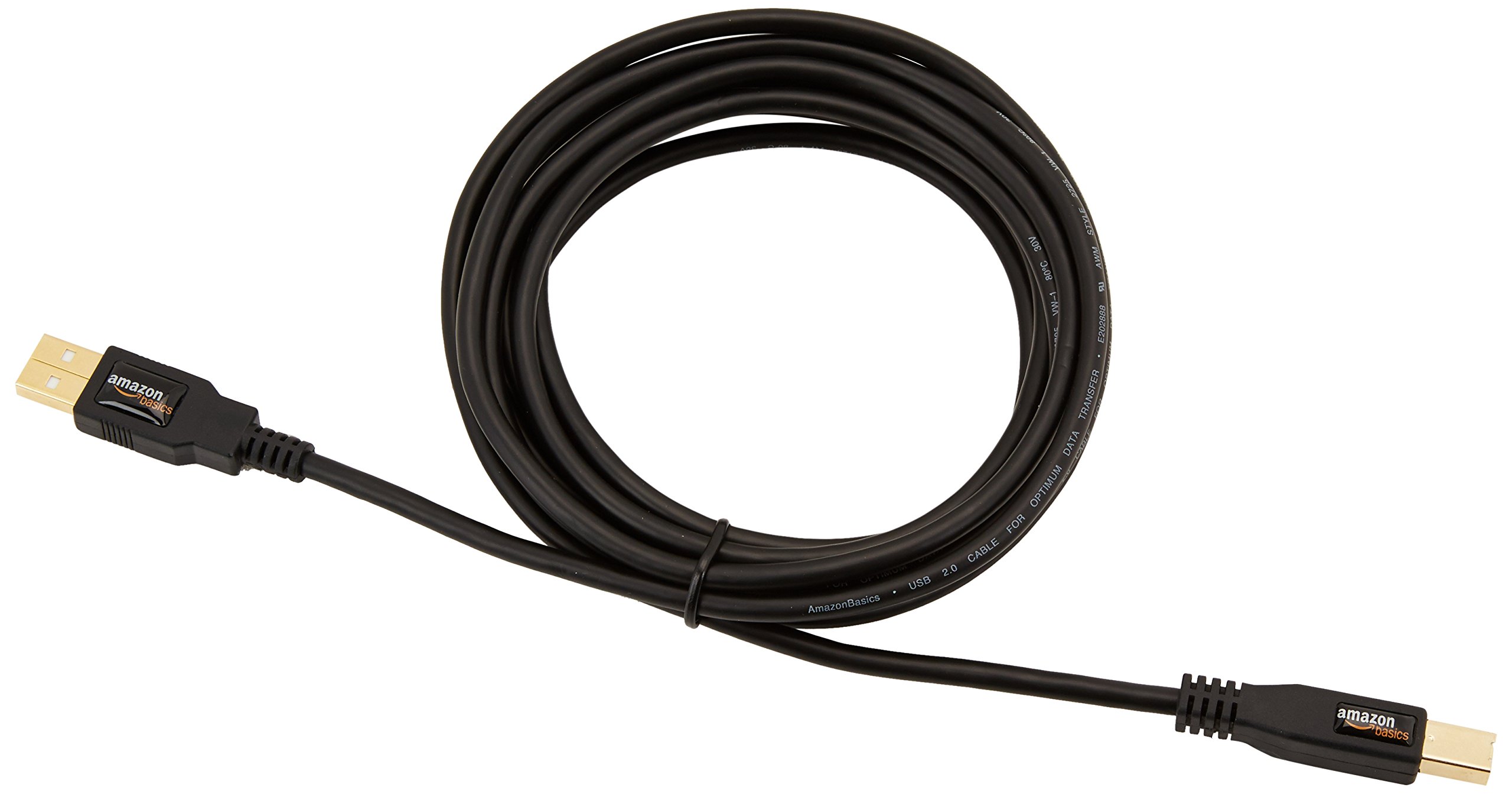 "Amazon Basic Multi Shield USB 2.0 (A) Male - (B) Male Cable" features multiple shields to protect cables from noise of electromagnetic waves and high frequency signals, reduce band loss and clear signals