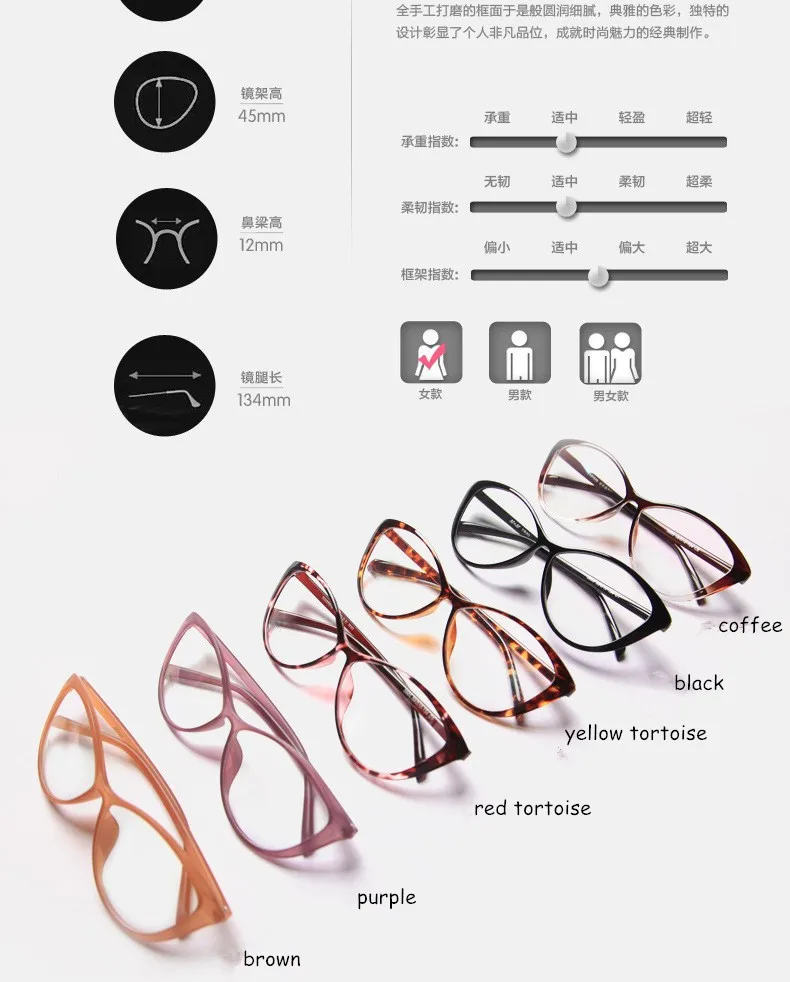 Item name:TR 90 Eyeglasses Cat Eyes Stylish Optical Glasses Frame for Women