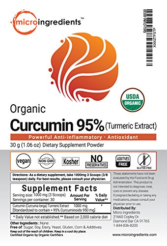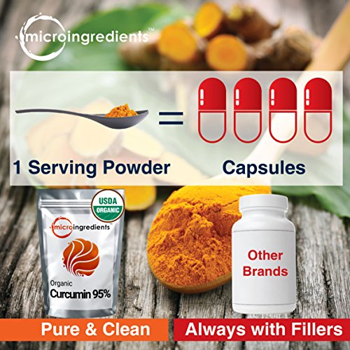 -. Feature : USDA Organic Pure Curcumin Extract Powder. Non-GMO and Vegan Friendly. / Highest concentration. Up to 30 times stronger than raw turmeric root powder. / Powerfully Helps reduce Inflammation & joint pain, boosts brain function & memory, improves digestion & blood circulation, enhances immune and nervous system. / No additives, No preservatives, No fillers, No artificial colors or No flavors and Gluten Free. / Powder lover? Take it naturally in powder for higher concentration, quicker absorption, easier on the stomach, and more ways to have fun!