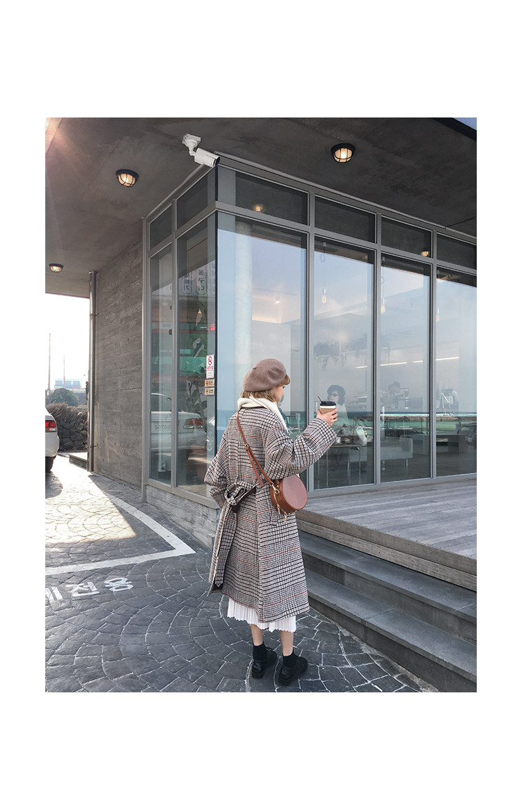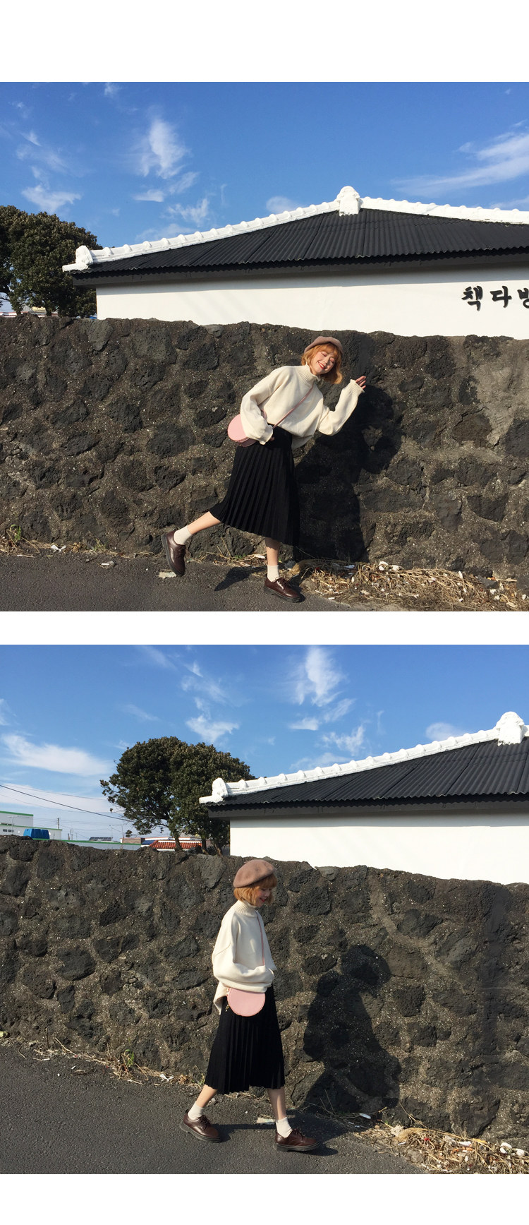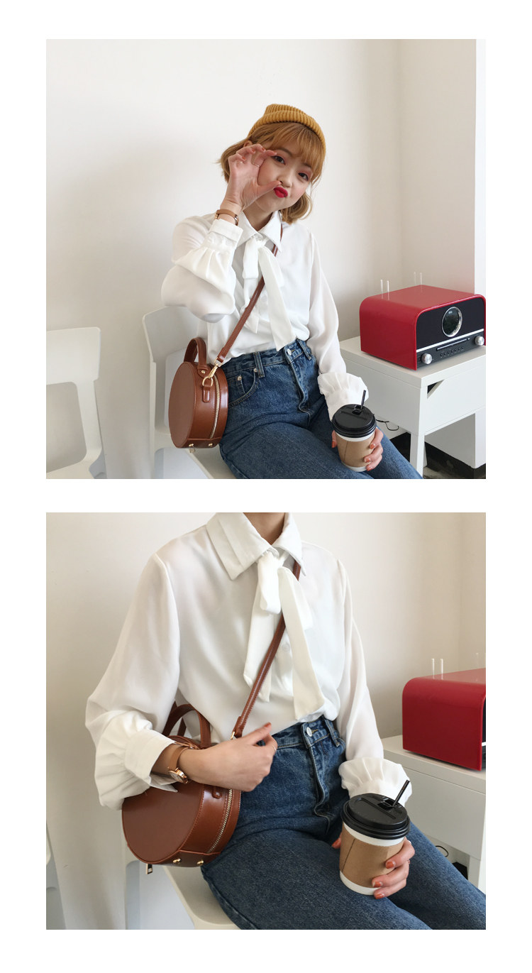 シンプルな组み合わせに几何形のバッグがデザイン感を増す。