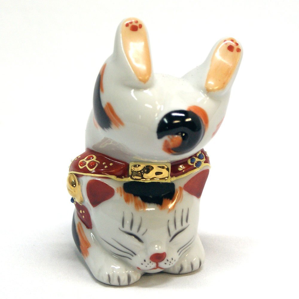Japanese Maneki Neko Handstand Lucky cat Kutani ceramic