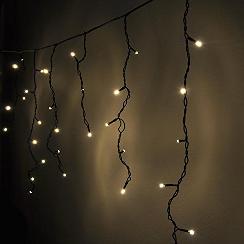 LEDwholesalers 16.4-ft 120-LED Icicle Christmas Holiday Lights with Dark Green Wire, Warm White, X064WW