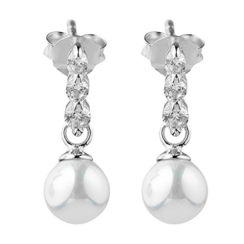 -. Title : Sterling Silver White Cubic Zirconia Simulated Shell Pearl Dangle Earrings