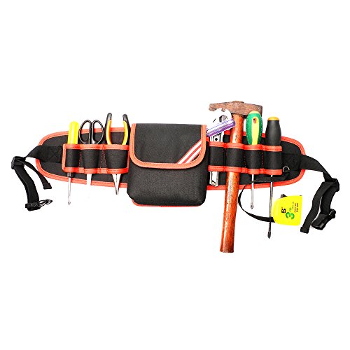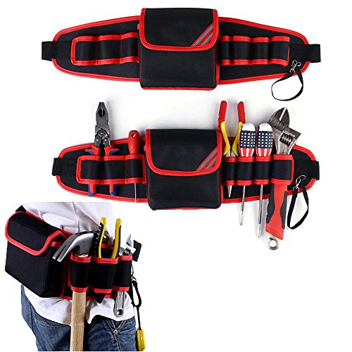 Electricians Tool Belt Pouch Adjustable Waist Bag Waterproof Durable Multi-functional for Screwdriver Tool Holder Rack (Red)